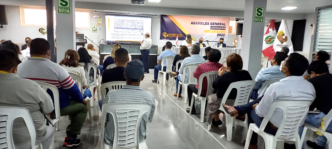 El sábado 26 de marzo tuvo lugar la Asamblea General Ordinaria de Delegados 2022 de manera presencial. Se contó con gran parte de la asistencia de los delegados electos de este año. En el desarrollo de la Asamblea se han tratado varios puntos de la agenda, como la exposición y aprobación de la memoria Anual 2021, sustentación y aprobación del Balance General del ejercicio anterior, entre otros